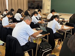 春夏秋冬の風情・気持ち・感情を著した枕草子にちなんで、各自タブレットで言葉を調べながら「わたしの枕草子」を作成しました。