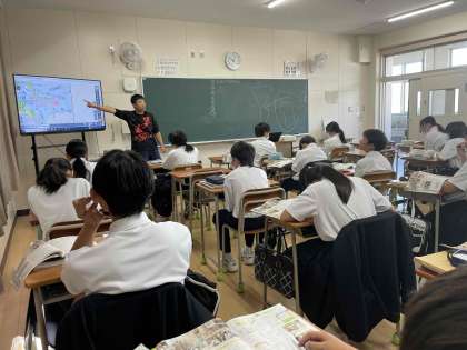 時間割変更で1組は社会です。