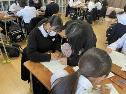 三角形の分類分けと多角形の内角の和についてグループワークをしました。