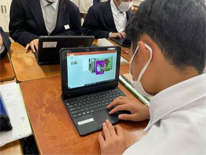 パワーポイントを使い、マグカップに印刷するオリジナルのデザインを考えました。