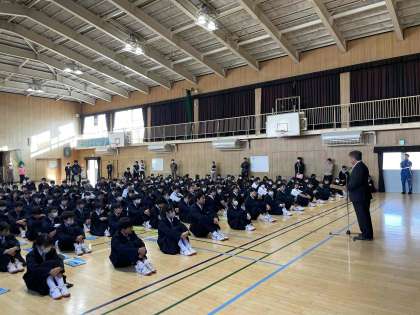 藤田先生から「各学級ごとに給食の配膳準備を工夫しよう」とのお話がありました。