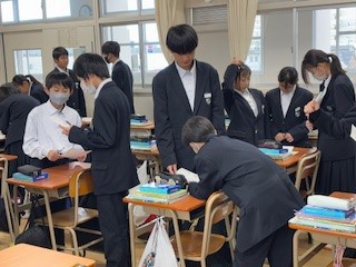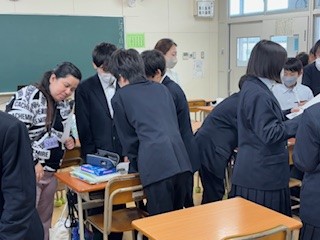 5限目に1年2組で、英語・清水先生の研究授業が行われました。