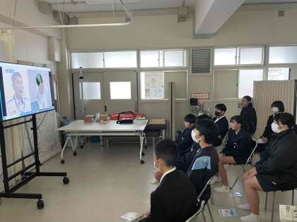 映像を見た後、心配蘇生とAED使用の実技を行いました。