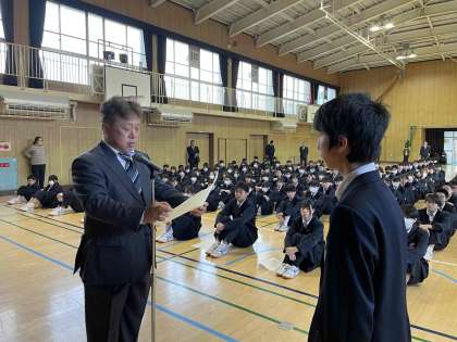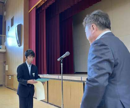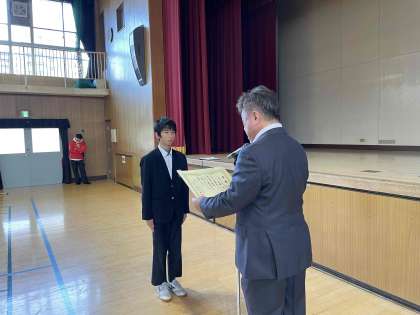 2年1組川野くんの標語コンクールにおける表彰の伝達がありました。