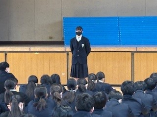 今日は私学出願ですね。受験のことだけではありません。残り少ない中学校生活はみなさんにとって結実の時です、一人ひとりが何事にも一生懸命取り組むようにしましょう。」とお話がありました。