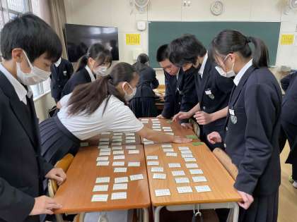 来週の大会に向けて百人一首の対戦でした。