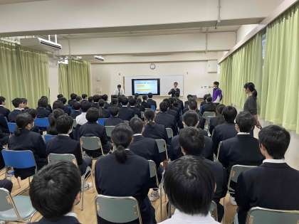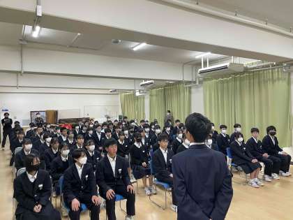 75期生(2年前の卒業生)直野醍冴さん、廣藤椋さんを講師としてお招きし、後輩たちに向けて心のこもったお話を聴かせてもらいました。