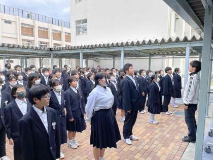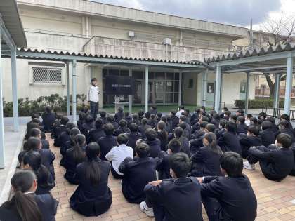 明るい屋外で本所先生のお話を聞いた後
