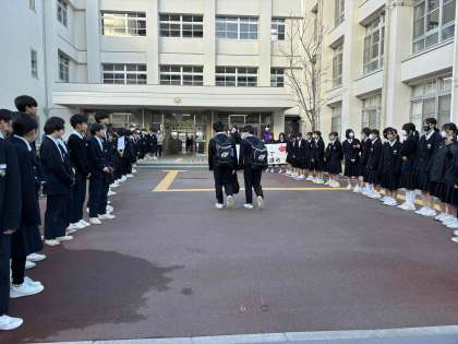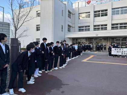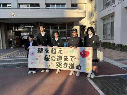 2/20(木)?21(金)公立特別選抜となるので1、2年生97名があいさつ運動に参加し3年生を応援しました。