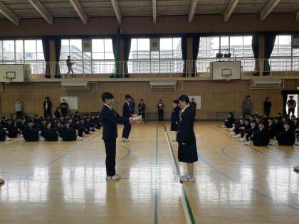 最後に在校生から手書きのメッセージのプレゼントがあり、卒業生が退場していきました。