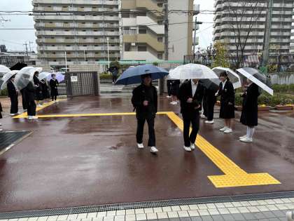雨が降っていましたが、雨の音に負けない元気な「おはようございます!」の声と共に「頑張ってください!」と応援メッセージを届けました。