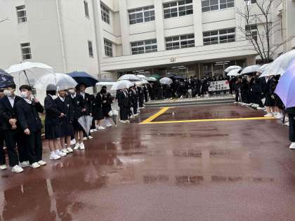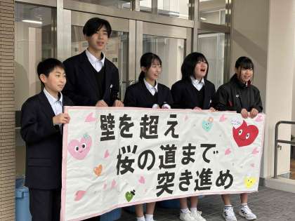 3/12(水)公立一般選抜があるので1、2年生89名があいさつ運動に参加し3年生を応援しました。