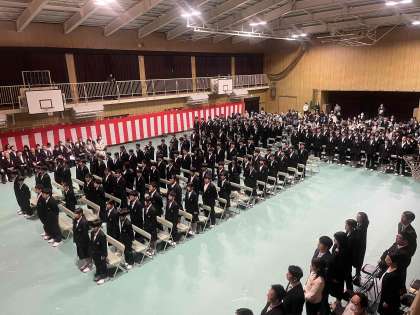では新入生の皆さん、これから始まる3年間が、皆さん一人ひとりにとって実り多いものとなるよう、ともに歩んでいきましょう。皆さんが本校で充実した3年間を送り、大きく成長されることを心から願って、式辞といたします。