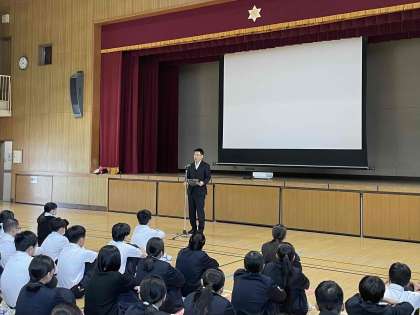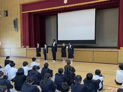 長吉中学校の皆さんが、相手の立場を考え、あたたかい言葉をかけあうことで、いじめのない「優しさあふれる学校」になることを願っています。あわせて、生徒の皆さん一人ひとりが、かけがえのない自分自身のいのちを大切にしてほしいと思います。この後、生徒会からの発表もあります。今日の取り組みを通じて、長吉中学校の皆さんが安全で安心して生活できることを願って、「いじめ・いのちについて考える日」の話とします。
