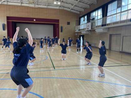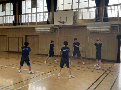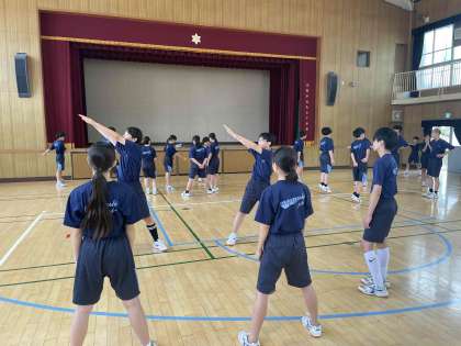 グループに分かれ、2年生がラジオ体操を細部にわたり教えました。