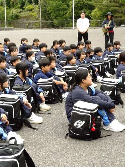 しっかりと話を聞いています。この後は野外炊事です。