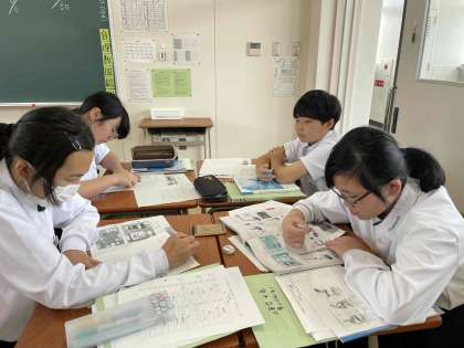 グループに分かれ、中間テストの振り返りをしました。