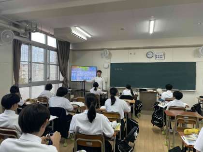 本日は社会科の荒尾先生が1年2組で社会の授業を行いました。
