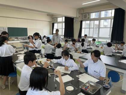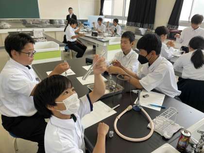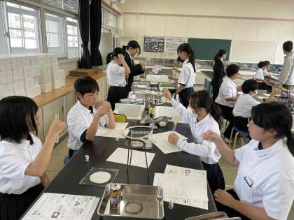 4種類の白い粉末の正体を、試験管に水を入れて区別しました。