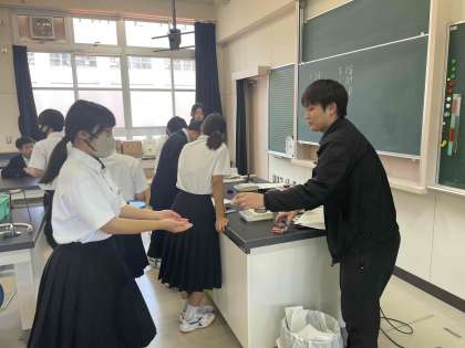 金属と酸素が結びつくときの、その質量の関係を調べました。