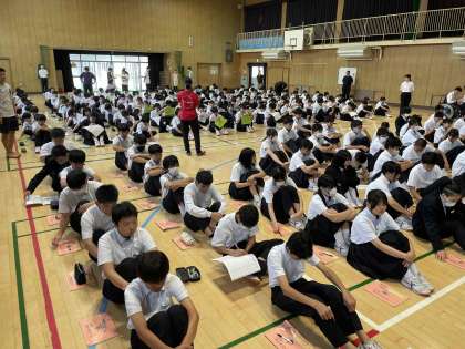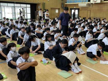 全校集会の前に藤田先生からのお話と、今未来手帳の記入がありました。