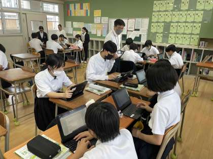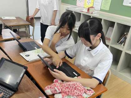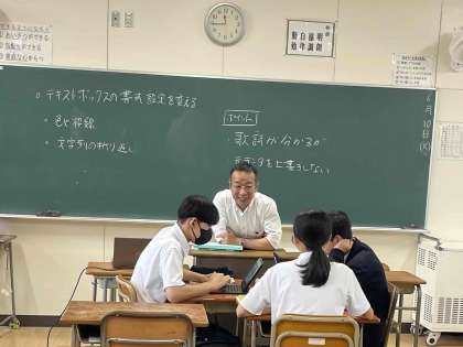 テキストボックスの設定を変更し、オリジナルの校歌の歌詞カードを作りました。