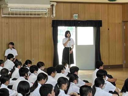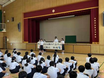 今年度のいじめ撲滅スローガンの紹介がありました。