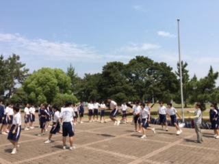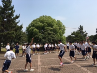 羽衣青少年センターに到着後、クラス対抗の大縄飛び大会を実施しました。