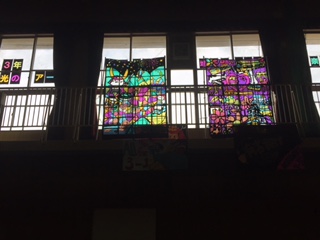 校外学習や修学旅行をテーマに一人一人がイラストを描きそれをコラージュして作った作品です。