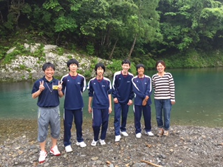 民泊先の近くの川で子どもたちは石投げをして遊んでいます。