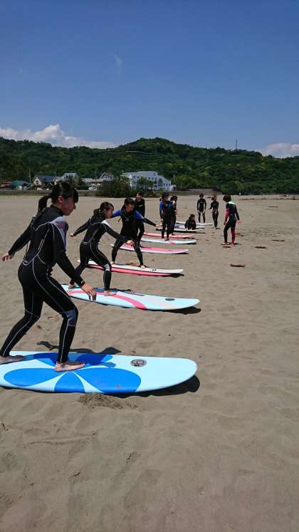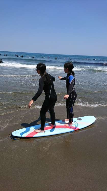 午後のプログラムは一人ひとりが選択したプログラムを取り組んでいます。マリンスポーツのサーフィンの様子です。絶好のサーフィン日和となりました!