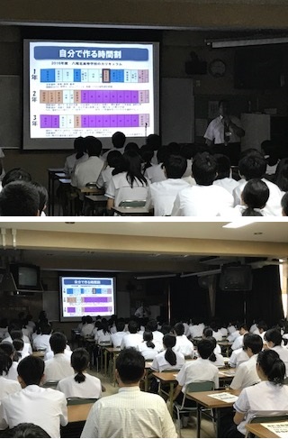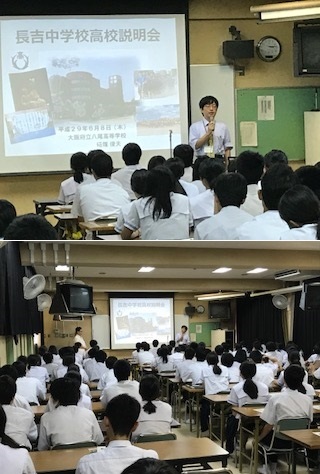 6月8日(木)6時間目に3年生は多目的室で高校説明会を行いました。本日は、総合学科の府立八尾北高等学校、普通科の府立八尾高等学校の先生をお招きをして子どもたちに総合学科、普通科についてお話をしていただきました。高校の先生方、ありがとうございました。