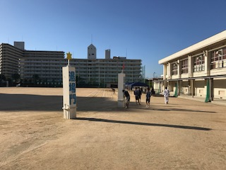 9月29日(金)、昨日の雨天から一転して秋晴れの朝を迎えています。早朝より教職員、係生徒、部活動の生徒が準備をしています。保護者の皆さま、地域の皆さま、子どもたちの頑張りをご覧ください。
