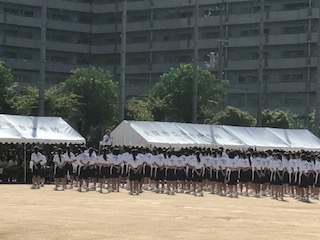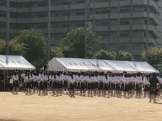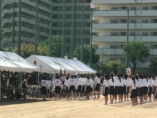 入場行進の後、学校長挨拶、PTA会長のことば、選手宣誓です。