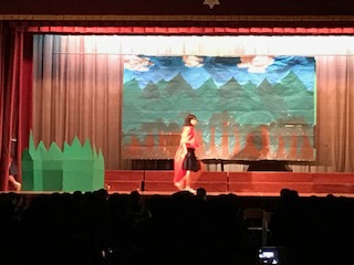 文化祭の舞台発表の最後は3年生全体劇・合唱でした。「赤ずきんちゃんとオオカミ少年」の劇を通して子どもたちは表現し、「奏」の曲を全体で合唱しました。