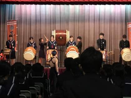 10月28日(土)、芸術鑑賞会を体育館で行いました。大治太鼓尾張一座さんによる和太鼓の演奏を聴きました。その後、子どもたちが和太鼓を体験する時間があり、子どもたちは伝統楽器に親しむ時間を持つことができました。