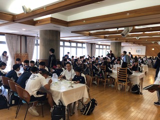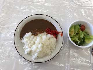 予定通りに子どもたちは遊遊NASAに到着し、昼食を食べています。昼食のメニューはカレーライスです。