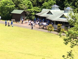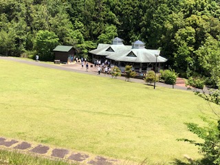 子どもたちがカツオのたたき作りを体験した「まぜのおか」会場です。緑に囲まれた場所で子どもたちは自然を体感しながら体験しました。