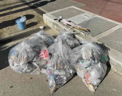 地域、保護者、生徒、教職員が一体となり、1時間で弱でたくさんのゴミ、缶、ペットボトルを拾うことができました。