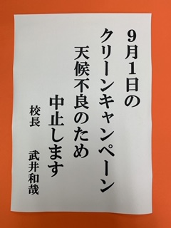 天候不良のため、残念ですがクリーンキャンペーンを中止いたします