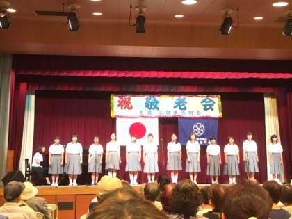 9月8日(日)に敬老会があり、コーラス部が歌声を披露してくれました。懐かしい唱歌や、朝ドラのテーマ曲に合わせて、会場の高齢の方々もニコニコ笑顔で手拍子をして楽しんでおられました。