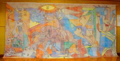 1年生は、ピカソの「ゲルニカ」のモザイク画に取り組みました。