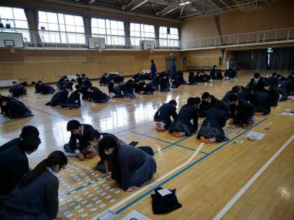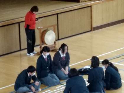 5.6時間目に体育館で行われ、大会実行委員の生徒の司会、