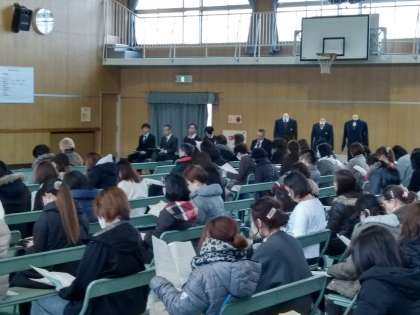 本日は、4月に入学する生徒の保護者説明会と標準服