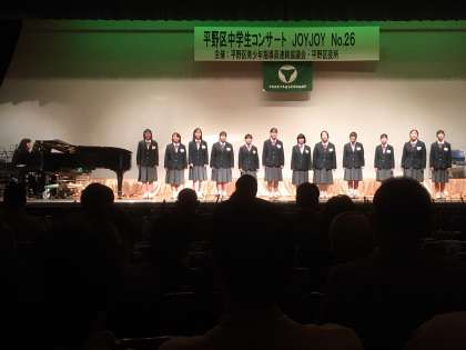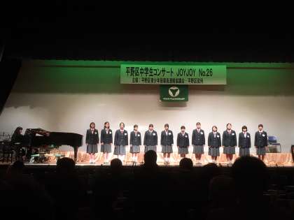 9日(日)に平野コミュニティプラザで行われた第26回平野区中学生コンサートJOYJOYにコーラス部が参加し素晴らしい発表を披露してくれました。
