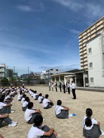 生徒は皆、緊張した雰囲気でしっかり話を聞いていました。