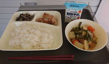 鶏肉のゆず塩焼き、含め煮、魚ひじきそぼろ