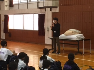 入所式では布団の敷き方とたたみ方を教えてもらいました。