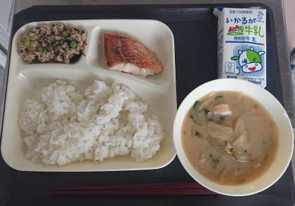 あかうおのレモンじょうゆかけ みそ汁 高野どうふのいり煮 ごはん 牛乳