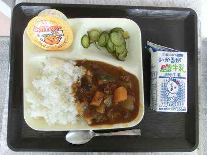 夏野菜のカレーライス きゅうりのサラダ みかんゼリー